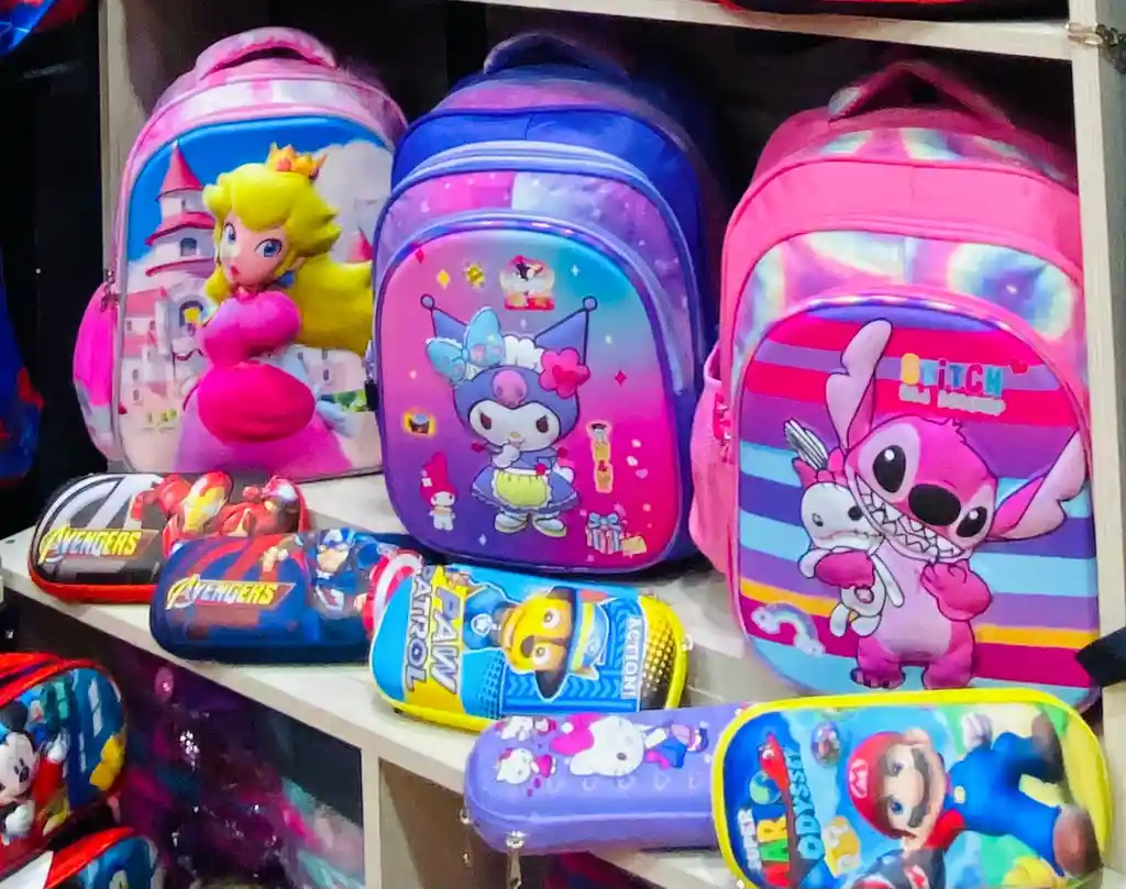 Maletas están disponibles en diversos tamaños, colores, estilos y materiales, y generalmente incluyen varios compartimentos para organizar el contenido. Para edades entre 8 a 12 años.