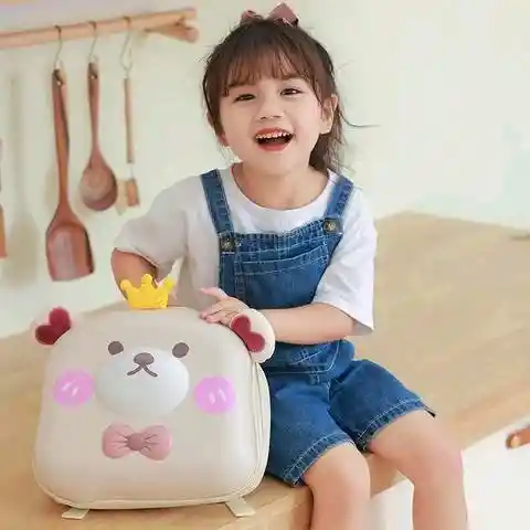 Maleta Morral Oso • Materiales: EVA, poliéster y malla • Medidas: 23x12x26 cm aprox *Debido a factores como la luz y las pantallas, existen ligeras diferencias entre el producto y la imagen*