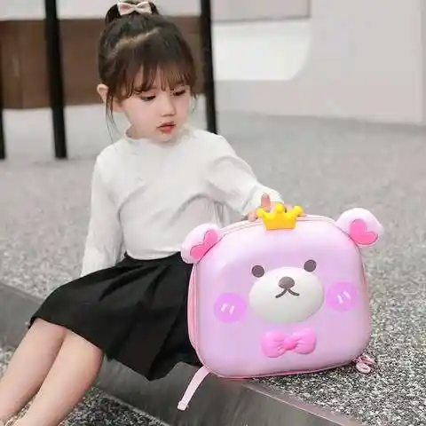 Maleta Morral Oso • Materiales: EVA, poliéster y malla • Medidas: 23x12x26 cm aprox *Debido a factores como la luz y las pantallas, existen ligeras diferencias entre el producto y la imagen*