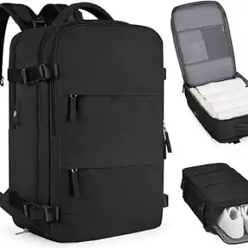 Versatil y espacioso: nuestra mochila de viaje es el companero definitivo para tus necesidades de equipaje de mano. Tamano: 17.7″ 11.8″ 7.8″. Peso: 2.2 libras. Con una gran capacidad y multiples compartimentos, puede empacar facilmente todo lo que necesita para su viaje, ya sea por negocios o por placer. Di adios a la molestia de tratar de colocar todas tus pertenencias en una bolsa pequena. ,-Inteligente y conveniente: disenada pensando en el viajero moderno, nuestra mochila cuenta con un compartimento para portatil integrado, para que pueda mantener sus dispositivos electronicos seguros y protegidos. Ademas, el puerto de carga USB te permite mantenerte conectado sobre la marcha. Ya no busques una salida en aeropuertos o estaciones de tren abarrotados. ,-Compartimento para zapatos y bolsillo humedo: el compartimento para zapatos esta disenado para acomodar zapatos hasta US talla 9.5, proporcionando un almacenamiento limpio y separado. La parte inferior del compartimento para zapatos esta equipada con dos puertos de ventilacion para garantizar un excelente flujo de aire y evitar olores desagradables. El bolsillo humedo esta hecho de tela de alta calidad con excelentes propiedades impermeabilizantes. Se puede utilizar para almacenar articulos de tocador o ropa humeda, asegurando una separacion efectiva de articulos secos y humedos. Caracteristicas listas para viajar: Nuestra mochila no solo es perfecta para viajar, sino tambien para el uso diario. La funda de la carretilla te permite deslizarla comodamente sobre el asa de tu equipaje para un facil transporte. Las correas de hombro transpirables ajustables y el panel trasero acolchado garantizan un ajuste comodo, incluso durante largas caminatas o exploraciones de la ciudad. -Aprobado por vuelos y resistente al agua: Descanse tranquilo sabiendo que nuestra mochila tiene el tamano perfecto para equipaje de mano, aprobada por la mayoria de las aerolineas. El diseno impermeable garantiza que tus pertenencias se mantengan secas, incluso en condiciones climaticas inesperadas. Ya sea que viaje en avion, tren o automovil, nuestra mochila es el mejor companero de viaje. Medidas: 50x23x35 cm