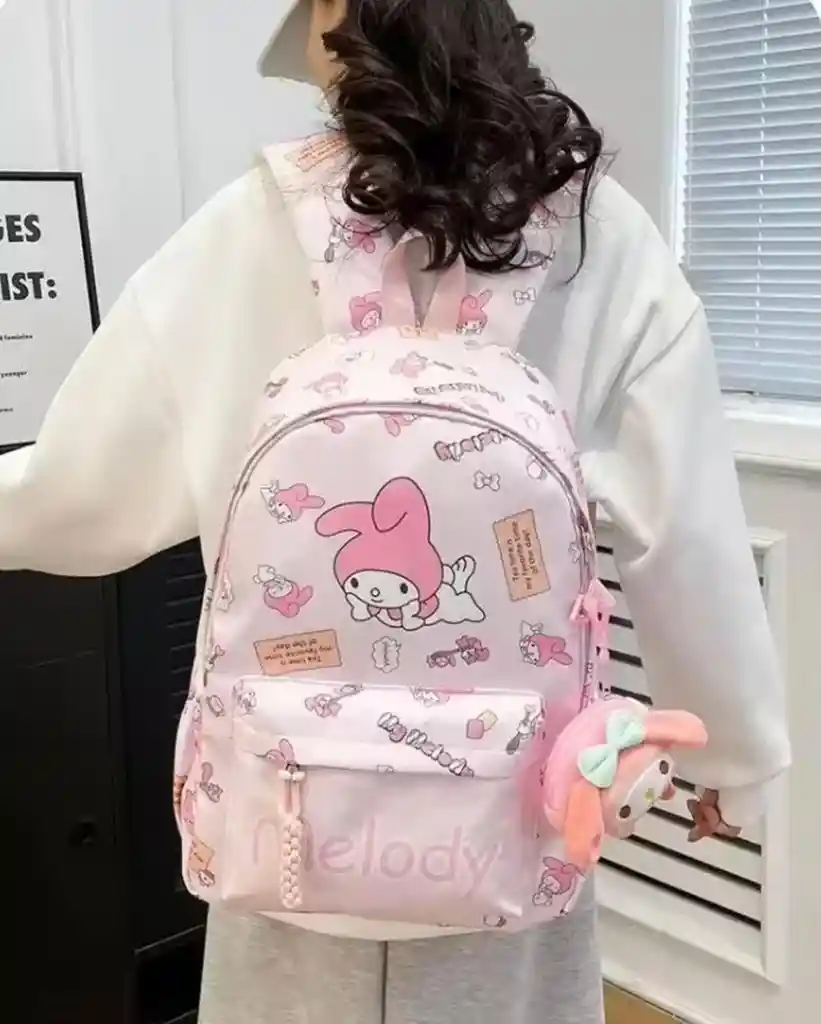 Maleta Sanrio • Medidas: 43 x 30 x 16 cm aprox • Gran capacidad, ligera y suave • Cómoda para adaptase a la espalda *Debido a factores como la luz y las pantallas, existen ligeras diferencias entre el producto y la imagen*