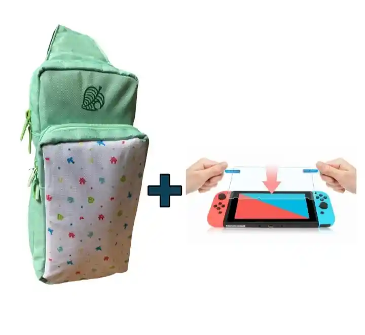 Maleta Protector Riñonera Animal Crossing + Vidrio Compatible Con Switch