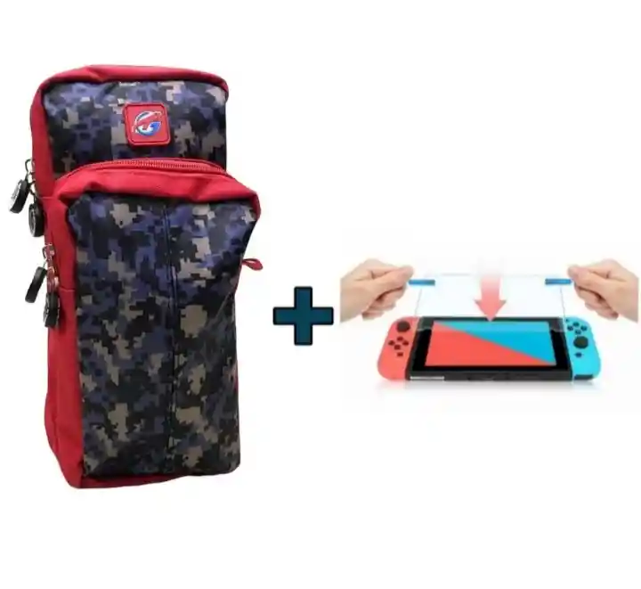 Maleta Protector Riñonera Camuflada + Vidrio Compatible Con Switch