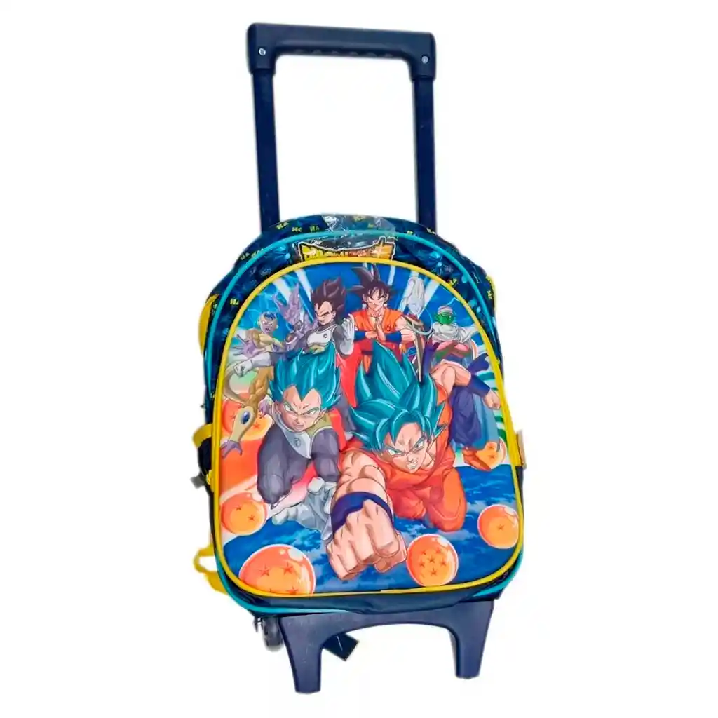 *Detalles: • Basado en la nueva saga de Dragón Ball Z Super 2019 • Material 20% EVA – 80% Poliéster • Forro 100% Poliéster • Interior Térmico • Interior Acolchado • UNA Cremallera • Hombreras reforzadas • Bolsillo laterales diseño de mallas • Cremalleras contramarcadas y doble costura • Ruedas de goma resistentes • Manija con ajuste de altura • Soporte rígido para sostenibilidad • Doble compartimiento **Medidas Aproximadas: Alto 36cm x ancho 26cm x profundidad 13cm Manija estirada 65cm