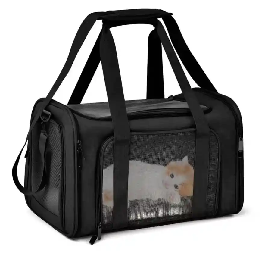 Maleta Para Mascotas Perro O Gato Guacal Mediano Totto Color Negro Este cargador para perro o gato de raza pequeña es ideal para llevar a tu mascota a todas tus aventuras. Se puede asegurar al cinturón de seguridad del carro o a la maleta de viaje. Elaborado en poliéster, es práctico de cargar en la mano o en el hombro gracias a su cómoda correa. Cuenta con una puerta de fácil acceso, buena ventilación y una ventana con cremallera en la parte superior. Su colchón es removible y fácil de limpiar. Para la seguridad de tu mascota, tiene una correa y un mosquetón interno para sujetar el arnés o collar.