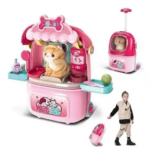 Kit de maleta transportadora para mascotas Pretend-n-Play: Este juego veterinario para mascotas viene con piezas de juguetes veterinarios. Incluye un perrito de peluche, unas tijeras, un peine, una pelota para mascotas, una pala, un grifo, un tazón de comida, comida para mascotas, una bandeja de comida, una boquilla de ducha, un champú. pegatina y una maleta de transporte. Con este kit completo de médico veterinario para mascotas de juguete, los niños pueden experimentar la diversión de tener una mascota. Maleta de transporte para mascotas 2 en 1: La nueva caja de almacenamiento portátil actualizada está diseñada para convertirse no solo en una mesa de juguetes, sino también en una maleta de viaje. Este kit médico para el cuidado de mascotas se puede transportar para facilitar el viaje y el almacenamiento. Todas las piezas se pueden almacenar en él. Los niños pueden llevar el juguete a todas partes y cuidar a sus mascotas dondequiera que vayan. Regalo perfecto para niños: Paquete de juguetes de gran valor para niños, juego de mascotas de médico. Perfecto para regalos de cumpleaños, regalos de Navidad, regalos del día de los niños y regalos de fiesta, juegos de rol, juegos de simulación, jardín de infantes. Crea horas de diversión en el tiempo de juego.