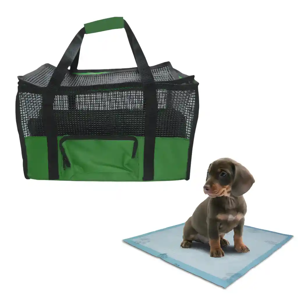 Bienvenido somos Hally Pets, tu mejor aliado para el cuidado de tu hijo Perruno y/o Gatuno. MALETIN CARGADOR GRANDE Largo 54 cm, ancho 24 cm, alto 30 cm Transporta de manera cómoda e ingeniosa a mascota con nuestro maletín tipo morral. Apta para llevar en cabina de Avión Superficie Inferior Rígida Superficie Superior Flexible Se puede desarmar para ocupar menos espacio cuando no se esté usando Características del producto: • Cuenta con un soporte en la base para proporcionar rigidez al momento de transportar a tu mascota. • Cuanta con 1 puertas de ingreso y salida, con Cremalleras • Excelente Material, duradero y fácil de limpiar, malla resistente. • Tiene soporte en la parte interna para darle rigidez y forma a tu maletín • Excelente Ventilación. • Contiene malla de cuatro lados no solo proporciona un viaje seguro y cómodo para tu mascota, sino que también es fácil para ti para comprobar es estado de tu mascota. • Cuenta con un bolsillo para transportar, alimentos, y oros accesorios tiene manijas para cargar. • Dimensiones: Largo 54 cm, ancho 24 cm, alto 30 cm. • Soporta un peso hasta 17 kilos. • Transportador de mascotas aprobado por las aerolíneas: los transportadores para mascotas están aprobados para su uso en la mayoría de las compañías aéreas y ofrecen más comodidad para un largo viaje con tu mascota. Nota: Por favor, mide el tamaño/peso de tu mascota y asegúrate de que tu mascota es adecuada para el cargador antes de comprar. No elijas el cargador solo según el peso, sino la longitud y la altura de tu mascota. Elige tu color favorito Adicionalmente lleva contigo y para tu mascota Tapete Entrenador Perro sin adhesivos Contiene 15 unidades de Tapete Entrenador Perro Tapetes para perros son desechables, permite mantener tu apartamento limpio y tu mascota también debido a que es súper absorbente hasta 1,2 litros, no ensuciará sus patas cuando haga pipí, no se moverá gracias a sus adhesivos luego solo lo botas a la basura y colocas otro. Ahorra tiempo y protege tus pisos, es ideal para todo tipo de perros debido a su amplia área de absorción aproximadamente 60 Cm x 60 Cm. Instrucciones de uso 1. Retire del empaque. 2. Abra el pañal por la parte plástica hacia el piso. 3. Llévelo al piso 4. Lleve a su mascota al tapete Composición • Tela Absorbente recubierta en plástico impermeable Precaución y advertencias • Mantenga fuera del alcance de los niños. • No reutilice mas de 6 veces. Condiciones de almacenamiento • Almacene en un lugar limpio y seco, libre.
