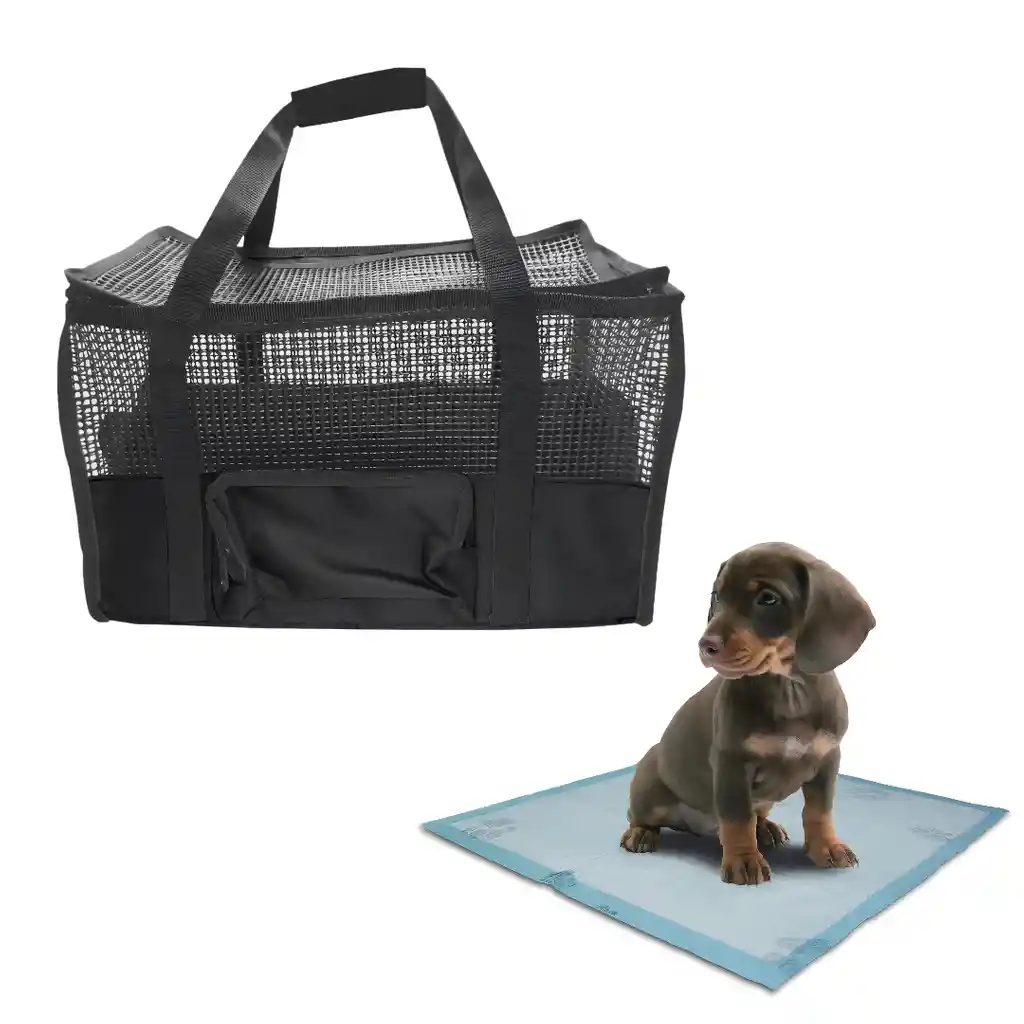 Bienvenido somos Hally Pets, tu mejor aliado para el cuidado de tu hijo Perruno y/o Gatuno. MALETIN CARGADOR GRANDE Largo 54 cm, ancho 24 cm, alto 30 cm Transporta de manera cómoda e ingeniosa a mascota con nuestro maletín tipo morral. Apta para llevar en cabina de Avión Superficie Inferior Rígida Superficie Superior Flexible Se puede desarmar para ocupar menos espacio cuando no se esté usando Características del producto: • Cuenta con un soporte en la base para proporcionar rigidez al momento de transportar a tu mascota. • Cuanta con 1 puertas de ingreso y salida, con Cremalleras • Excelente Material, duradero y fácil de limpiar, malla resistente. • Tiene soporte en la parte interna para darle rigidez y forma a tu maletín • Excelente Ventilación. • Contiene malla de cuatro lados no solo proporciona un viaje seguro y cómodo para tu mascota, sino que también es fácil para ti para comprobar es estado de tu mascota. • Cuenta con un bolsillo para transportar, alimentos, y oros accesorios tiene manijas para cargar. • Dimensiones: Largo 54 cm, ancho 24 cm, alto 30 cm. • Soporta un peso hasta 17 kilos. • Transportador de mascotas aprobado por las aerolíneas: los transportadores para mascotas están aprobados para su uso en la mayoría de las compañías aéreas y ofrecen más comodidad para un largo viaje con tu mascota. Nota: Por favor, mide el tamaño/peso de tu mascota y asegúrate de que tu mascota es adecuada para el cargador antes de comprar. No elijas el cargador solo según el peso, sino la longitud y la altura de tu mascota. Elige tu color favorito Adicionalmente lleva contigo y para tu mascota Tapete Entrenador Perro sin adhesivos Contiene 15 unidades de Tapete Entrenador Perro Tapetes para perros son desechables, permite mantener tu apartamento limpio y tu mascota también debido a que es súper absorbente hasta 1,2 litros, no ensuciará sus patas cuando haga pipí, no se moverá gracias a sus adhesivos luego solo lo botas a la basura y colocas otro. Ahorra tiempo y protege tus pisos, es ideal para todo tipo de perros debido a su amplia área de absorción aproximadamente 60 Cm x 60 Cm. Instrucciones de uso 1. Retire del empaque. 2. Abra el pañal por la parte plástica hacia el piso. 3. Llévelo al piso 4. Lleve a su mascota al tapete Composición • Tela Absorbente recubierta en plástico impermeable Precaución y advertencias • Mantenga fuera del alcance de los niños. • No reutilice mas de 6 veces. Condiciones de almacenamiento • Almacene en un lugar limpio y seco, libre.