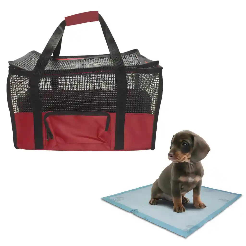 Bienvenido somos Hally Pets, tu mejor aliado para el cuidado de tu hijo Perruno y/o Gatuno. MALETIN CARGADOR MEDIANO Dimensiones: Largo 42 cm, ancho 24 cm, alto 26 cm. Transporta de manera cómoda e ingeniosa a mascota con nuestro maletín tipo morral. Apta para llevar en cabina de Avión Superficie Inferior Rígida Superficie Superior Flexible Se puede desarmar para ocupar menos espacio cuando no se este usando Características del producto: • Cuenta con un soporte en la base para proporcionar rigidez al momento de transportar a tu mascota. • Cuanta con 1 puertas de ingreso y salida, con Cremalleras • Excelente Material, duradero y fácil de limpiar • Tiene soporte en la parte interna para darle rigidez y forma a tu maletín • Excelente Ventilación. • Contiene malla de Cindo lados no solo proporciona un viaje seguro y cómodo para tu mascota, sino que también es fácil para ti para comprobar es estado de tu mascota. • Cuenta con un bolsillo para transportar, alimentos, y oros accesorios tiene manijas para cargar. • Dimensiones: Largo 42 cm, ancho 24 cm, alto 26 cm. • Transportador de mascotas aprobado por las aerolíneas: los transportadores para mascotas están aprobados para su uso en la mayoría de las compañías aéreas y ofrecen más comodidad para un largo viaje con tu mascota. Nota: Por favor, mide el tamaño/peso de tu mascota y asegúrate de que tu mascota es adecuada para el cargador antes de comprar. No elijas el cargador solo según el peso, sino la longitud y la altura de tu mascota. Elige tu color favorito Adicionalmente lleva contigo y para tu mascota Tapete Entrenador Perro sin adhesivos Contiene 15 unidades de Tapete Entrenador Perro Tapetes para perros son desechables, permite mantener tu apartamento limpio y tu mascota también debido a que es súper absorbente hasta 1,2 litros, no ensuciará sus patas cuando haga pipí, no se moverá gracias a sus adhesivos luego solo lo botas a la basura y colocas otro. Ahorra tiempo y protege tus pisos, es ideal para todo tipo de perros debido a su amplia área de absorción aproximadamente 60 Cm x 60 Cm. Instrucciones de uso 1. Retire del empaque. 2. Abra el pañal por la parte plástica hacia el piso. 3. Llévelo al piso 4. Lleve a su mascota al tapete Composición • Tela Absorbente recubierta en plástico impermeable Precaución y advertencias • Mantenga fuera del alcance de los niños. • No reutilice mas de 6 veces. Condiciones de almacenamiento • Almacene en un lugar limpio y seco, libre.