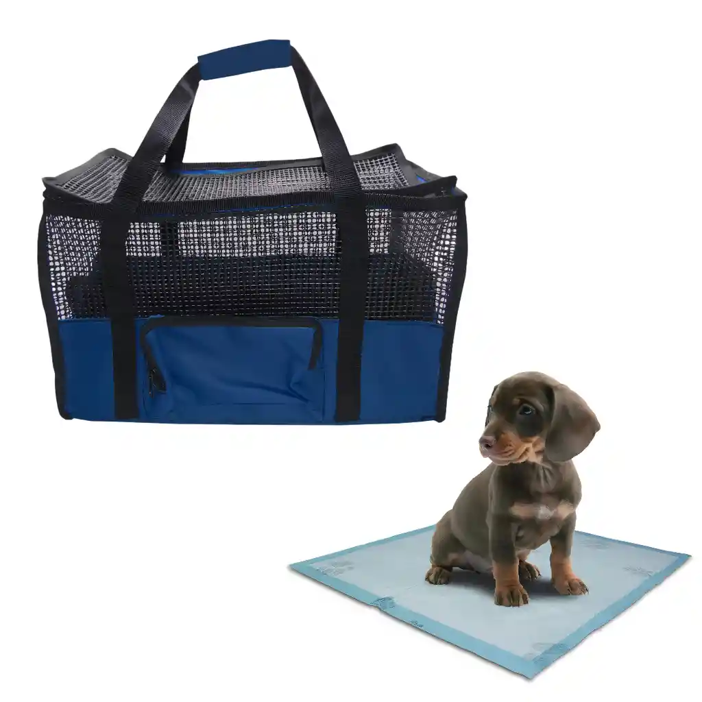 Bienvenido somos Hally Pets, tu mejor aliado para el cuidado de tu hijo Perruno y/o Gatuno. MALETIN CARGADOR MEDIANO Dimensiones: Largo 42 cm, ancho 24 cm, alto 26 cm. Transporta de manera cómoda e ingeniosa a mascota con nuestro maletín tipo morral. Apta para llevar en cabina de Avión Superficie Inferior Rígida Superficie Superior Flexible Se puede desarmar para ocupar menos espacio cuando no se este usando Características del producto: • Cuenta con un soporte en la base para proporcionar rigidez al momento de transportar a tu mascota. • Cuanta con 1 puertas de ingreso y salida, con Cremalleras • Excelente Material, duradero y fácil de limpiar • Tiene soporte en la parte interna para darle rigidez y forma a tu maletín • Excelente Ventilación. • Contiene malla de Cindo lados no solo proporciona un viaje seguro y cómodo para tu mascota, sino que también es fácil para ti para comprobar es estado de tu mascota. • Cuenta con un bolsillo para transportar, alimentos, y oros accesorios tiene manijas para cargar. • Dimensiones: Largo 42 cm, ancho 24 cm, alto 26 cm. • Transportador de mascotas aprobado por las aerolíneas: los transportadores para mascotas están aprobados para su uso en la mayoría de las compañías aéreas y ofrecen más comodidad para un largo viaje con tu mascota. Nota: Por favor, mide el tamaño/peso de tu mascota y asegúrate de que tu mascota es adecuada para el cargador antes de comprar. No elijas el cargador solo según el peso, sino la longitud y la altura de tu mascota. Elige tu color favorito Adicionalmente lleva contigo y para tu mascota Tapete Entrenador Perro sin adhesivos Contiene 15 unidades de Tapete Entrenador Perro Tapetes para perros son desechables, permite mantener tu apartamento limpio y tu mascota también debido a que es súper absorbente hasta 1,2 litros, no ensuciará sus patas cuando haga pipí, no se moverá gracias a sus adhesivos luego solo lo botas a la basura y colocas otro. Ahorra tiempo y protege tus pisos, es ideal para todo tipo de perros debido a su amplia área de absorción aproximadamente 60 Cm x 60 Cm. Instrucciones de uso 1. Retire del empaque. 2. Abra el pañal por la parte plástica hacia el piso. 3. Llévelo al piso 4. Lleve a su mascota al tapete Composición • Tela Absorbente recubierta en plástico impermeable Precaución y advertencias • Mantenga fuera del alcance de los niños. • No reutilice mas de 6 veces. Condiciones de almacenamiento • Almacene en un lugar limpio y seco, libre.