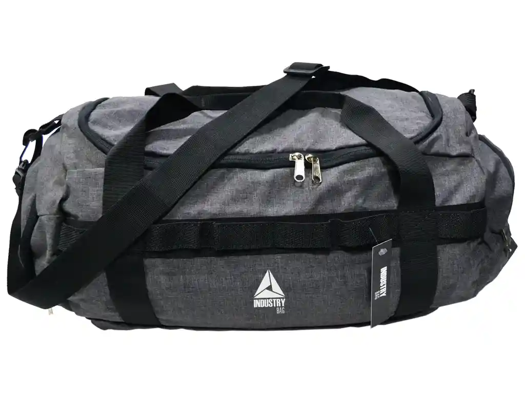 Maletín deportivo Ref. Duffel (producto nuevo) diseñado para llevar accesorios de entrenamiento diario y prendas deportivas de gimnasio, crossfit, fútbol entre otras disciplinas. Tula multifuncional con espacio suficiente en sus 4 bolsillos. Cuenta con ojales laterales para colgar las caramañolas. Para mayor comodidad tiene manijas de mano y una cargadera larga ajustable para colgar terciado en el hombro.ESPECIFICACIONESMarca: INDUSTRY BAGColor: Gris jaspeado / Negro / Verde Militar / Azul Oscuro Dimensiones: 27 cm de alto x 53 cm de largo x 27 cm de anchoMaterial: Lona morral impermeable, 100% Nacional súper resistenteCapacidad: 32 litrosCARACTERÍSTICASDiseño deportivo multifuncional y liviano1 compartimento principal multifuncional1 bolsillo interior con cremallera para accesorios2 bolsillos laterales con cremalleraCremallera (#6)Cargadera para el hombro ajustableCargaderas de manoSOMOS INDUSTRY BAG MARCA COLOMBIANA. FABRICAMOS AL DETAL Y POR MAYOR MORRALES, MALETINES, TULAS, MANCUERNAS Y ACCESORIOS EN LONA 100% NACIONALES. HACEMOS DISEÑOS PERSONALIZADOS CON EL LOGO DE SU EMPRESA.