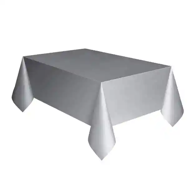 Mantel Plàstico color Plata para mesa rectagular.