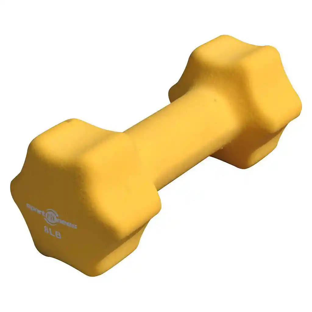SKU: PS088 Código: 071411 material interno en hierro cubierta de neopreno inyectado peso: 8 libras color: amarillo valor unidad Marca: Sportfitness La Mancuerna en Neopreno en Estrella 8 Libras Sportfitness es una herramienta versátil y accesible para realizar una amplia variedad de ejercicios de entrenamiento de fuerza y acondicionamiento físico.