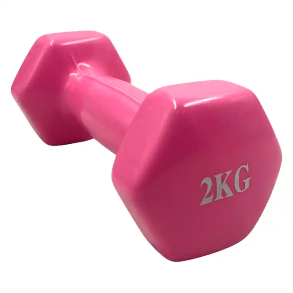 Mancuerna Encauchetada 2 Kilos Gym Fitness Ejercicio Pesas Rosada