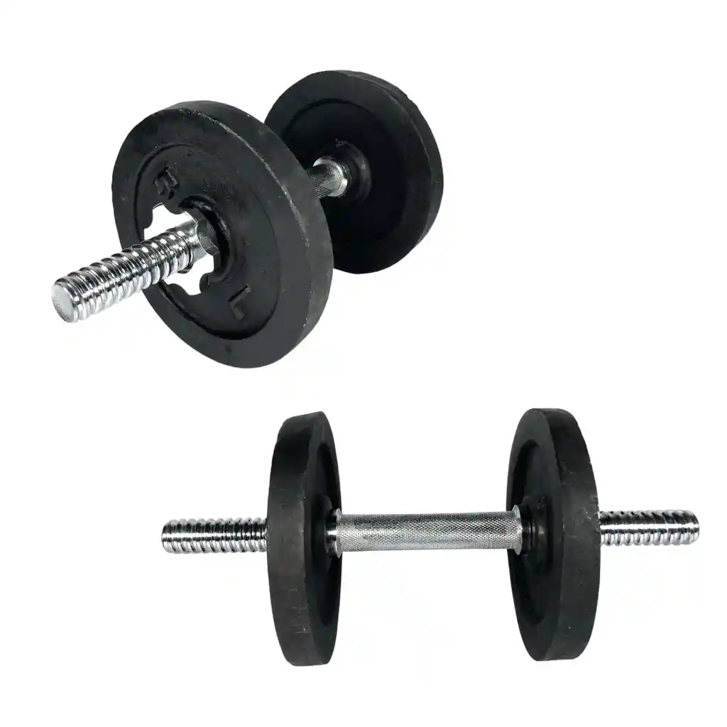Mancuernas ajustables Incluye: Disco 5lb x 4 unidades Barra mancuerna cromada x 2 unidades Seguros de mancuernas x 2 unidades Beneficios: -Ideal para tonificar y aumentar la masa muscular, en cualquier lugar. -Peso ajustable. -Pintura negro brillante. -Vuéltete más fuerte añadiendo mas peso en tus entrenamientos. Adjustable Dumbbells Includes: 5lb disc x 4 units Chrome dumbbell bar x 2 units Dumbbell locks x 2 units Benefits: -Ideal for toning and increasing muscle mass, anywhere. -Adjustable weight. -Glossy black paint. -Get stronger by adding more weight to your workouts.