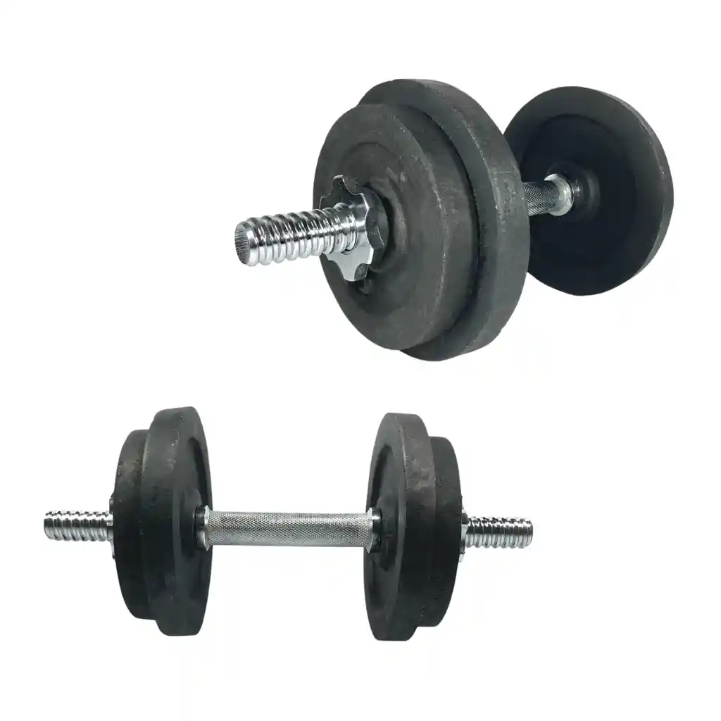 Mancuernas ajustables Incluye: Disco 3lb x 4 unidades Disco 5lb x 4 unidades Barra mancuerna cromada x 2 unidades Seguros de mancuernas x 2 unidades Beneficios: -Ideal para tonificar y aumentar la masa muscular, en cualquier lugar. -Peso ajustable. -Pintura negro brillante. -Vuéltete más fuerte añadiendo mas peso en tus entrenamientos. Adjustable Dumbbells Includes: 3lb disc x 4 units 5lb disc x 4 units Chrome dumbbell bar x 2 units Dumbbell locks x 2 units Benefits: -Ideal for toning and increasing muscle mass, anywhere. -Adjustable weight. -Glossy black paint. -Get stronger by adding more weight to your workouts.