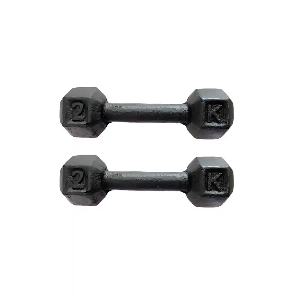 Mancuerna hexagonal 2kg -Ideales para ejercicios de fuerza, desarrollo muscular, perdida de grasa y mejorar rendimiento deportivo. -Aumenta gradualmente el peso con todas nuestras opciones de peso. -Material: Hierro fundido -Incluye dos mancuernas del mismo peso. Recomendación para que te duren toda la vida: *No exponer directamente al sol ni al agua. *Usar guantes para aislarlas del sudor. Hex Dumbbell 2kg -Ideal for strength training, bodybuilding, fat loss and athletic performance enhancement. -Gradually increase weight with all of our dumbbell options. -Material: Cast iron -Includes two dumbbells of the same weight. Recommended to last a lifetime: *Do not expose to direct sunlight or water. *Use gloves to insulate them from sweat.