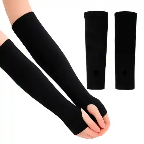 Material: Mezcla elástica de poliéster y fibras sintéticas (comúnmente nailon y elastano) para una compresión óptima. Diseño: Formato tubular de compresión que cubre desde el bíceps hasta la muñeca. Protección: Área de doble capa o acolchado ligero de forma ovalada en la zona del antebrazo para amortiguar el impacto del balón. Ajuste: Incluye una abertura para el pulgar en forma de lágrima que evita que la manga se deslice durante el juego