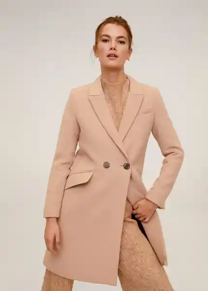 Bolsillos Laterales Cierre de Doble Botonadura Diseño Largo Forro Interior Manga Larga Solapas Tejido Mezcla de Lana 67060542_85