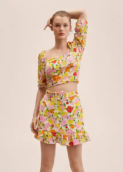 Botones Decorativos Diseño Crop Diseño Evasé Diseño Recto Escote Redondo Estampado Floral Goma Elástica en la Parte Posterior Manga Larga Con Puños Elásticos Tejido Fluido Total Look 27007132_12.