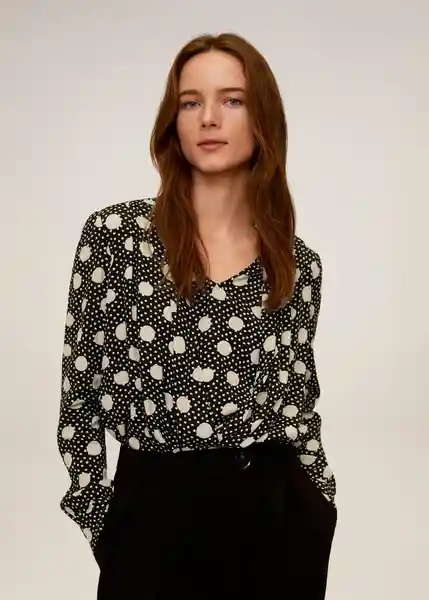 Diseño Cruzado Escote de Pico Estampado Topos Manga Larga Puños Abotonados Tejido Fluido Tejido Satinado 67064431_99