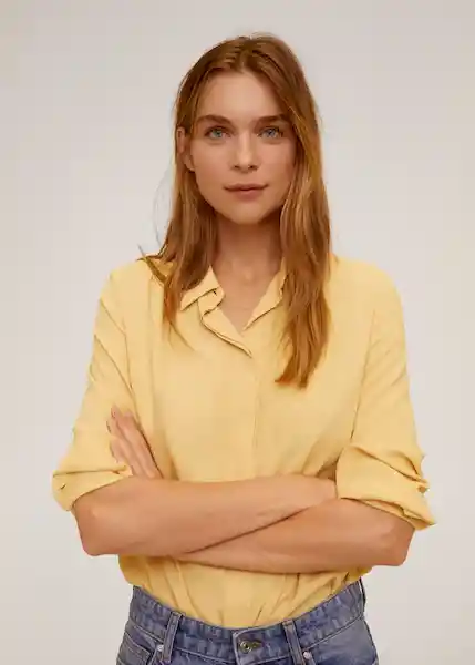 Cierre de Botones Cuello Clásico Manga Larga Puños Abotonados Tejido Fluido - 67045922_12