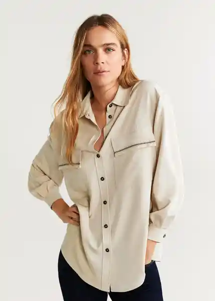 Cierre de Botones en la Parte Delantera, Cuello Clásico, Detalle de Flecos, Detalles Bordados, Dos Bolsillos de Solapa en el Pecho, Manga Larga Con Puños Abotonados, Tejido Fluido - 67030032_08
