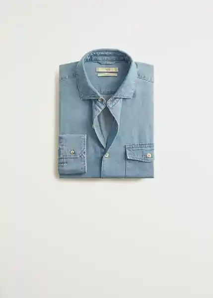 Bolsillo de Solapa Con Botón en la Parte Delantera Cierre de Botones Cuello Cutaway Lavado Medio Manga Larga Puños Abotonados Slim Fit Tejido de Algodón Estilo Denim - 67078253_Tm