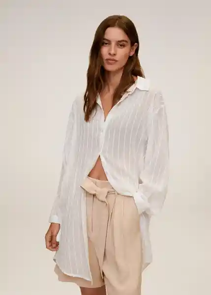 Cuello Clásico Detalle Fruncido Diseño Estampado Diseño Largo Manga Larga Puños Abotonados Tejido de Algodón - 67019027_02