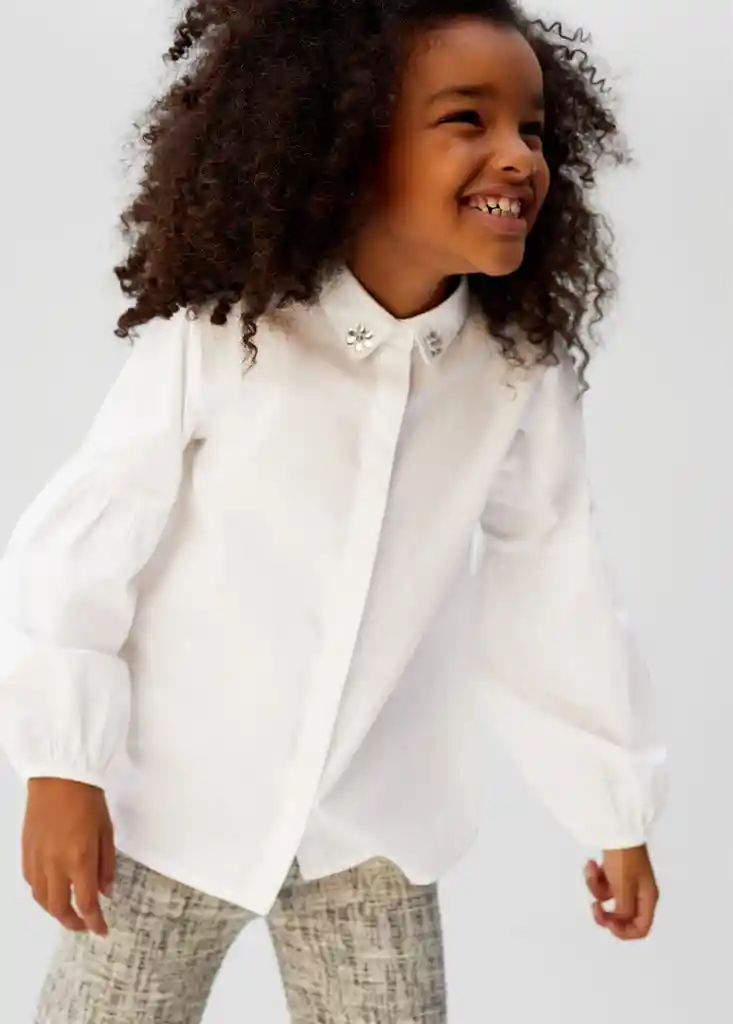 Camisa fluida apliques cuello - Composición: 100% algodón .Lavar a maquina max 30°c centrifugado corto.No usar lejia.Plancha max 110°c.No limpiar en seco.No se puede usar secadora.