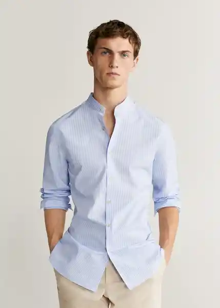 Cierre de Botones Cuello Mao Línea Smart Manga Larga Puño Redondeado Con Cierre de Dos Botones Slim Fit Tejido de Algodón Tejido de Rayas - 67024386_50