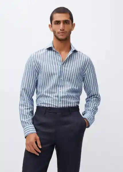 Cierre de Botones Cuello Clásico el Modelo Mide 183 cm y Lleva Una Talla M Manga Larga Con Puños Abotonados Slim Fit Tejido Italiano Tejido Mezcla de Algodón y Lino 27005691_52.