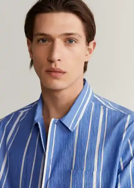 Aberturas Laterales Bolsillo de Parche en el Pecho Cierre de Botones Cuello Clásico Diseño de Rayas Línea Casual Manga Corta Regular Fit Tejido Con Textura Tejido de Algodón - 67008257_52