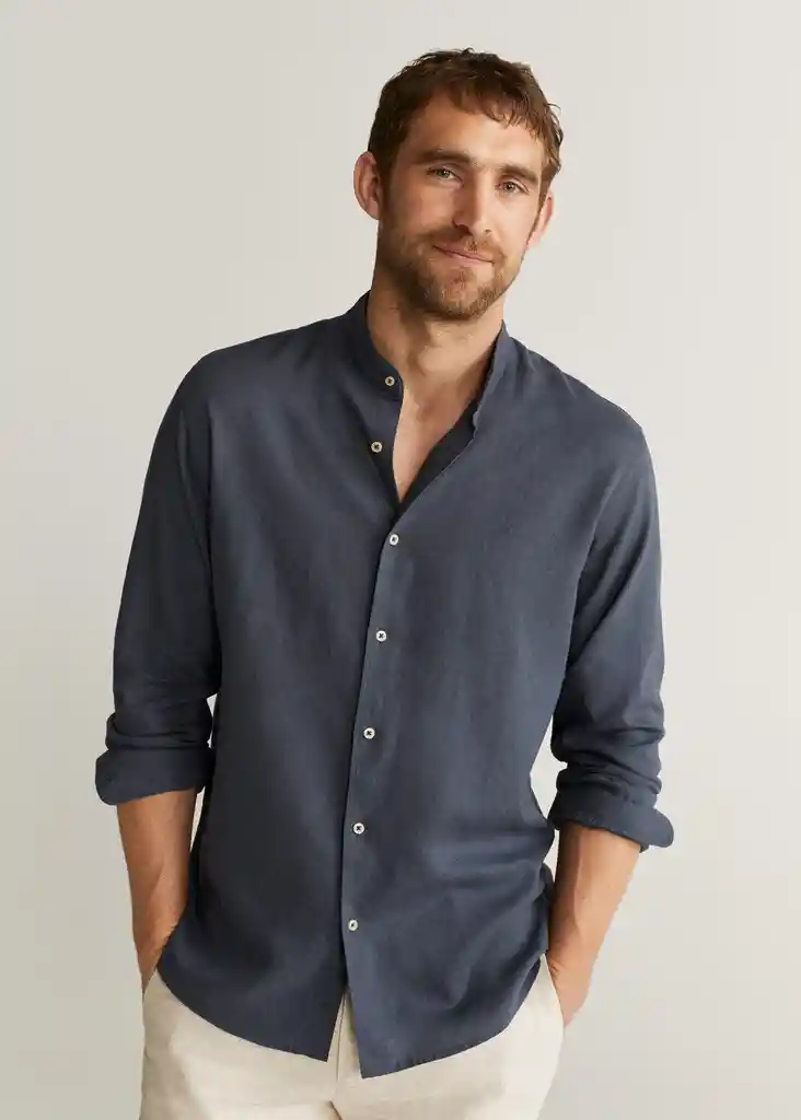 Cierre de Botones Cuello Mao Linea Casual Manga Larga Puño Redondeado Con Cierre de Dos Botones Regular Fit Tejido Con Lino - 67008259_59