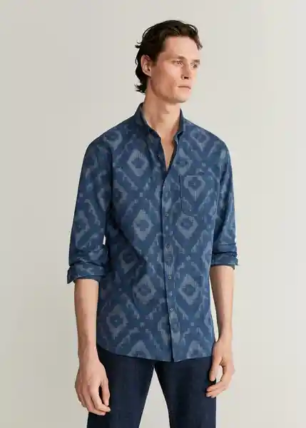 Bolsillo de Parche en el Pecho Camisa de Algodón Cierre de Botones Cuello Abotonado Cuello Clásico Diseño Estampado Línea Casual Manga Larga Manga Larga Con Puños Abotonados Puño Redondeado Con Cierre de Dos Botones Regular Fit 67077583_54