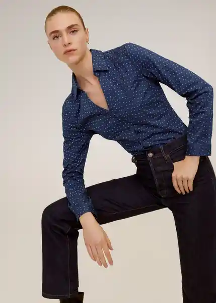 Cierre de Botones Cuello Clásico Diseño Estampado Manga Larga Abotonada Tejido Con Algodón 67060580_56