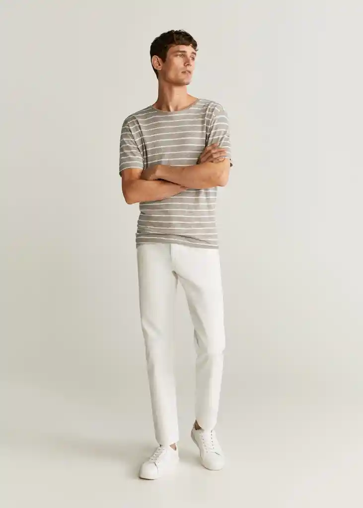 100% Lino Cuello Redondo Linea Casual Manga Corta Tejido de Rayas - 67015912_09