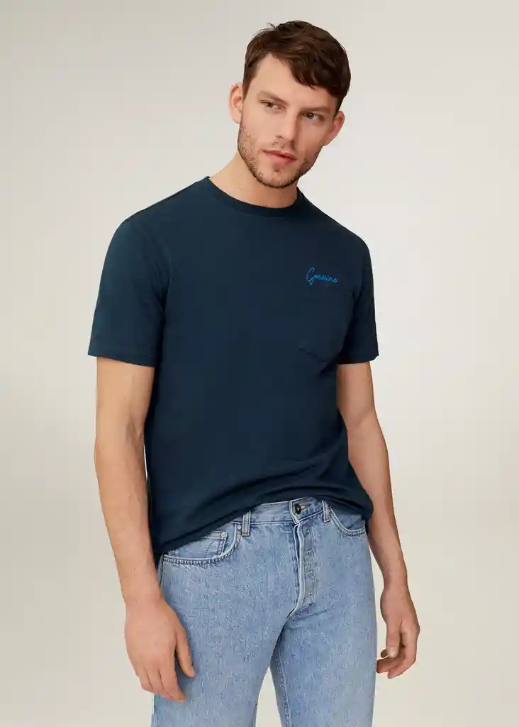 Bolsillo de Parche en el Pecho Cuello Redondo Detalle Bordado Linea Casual Manga Corta Tejido de Algodón - 67027681_56