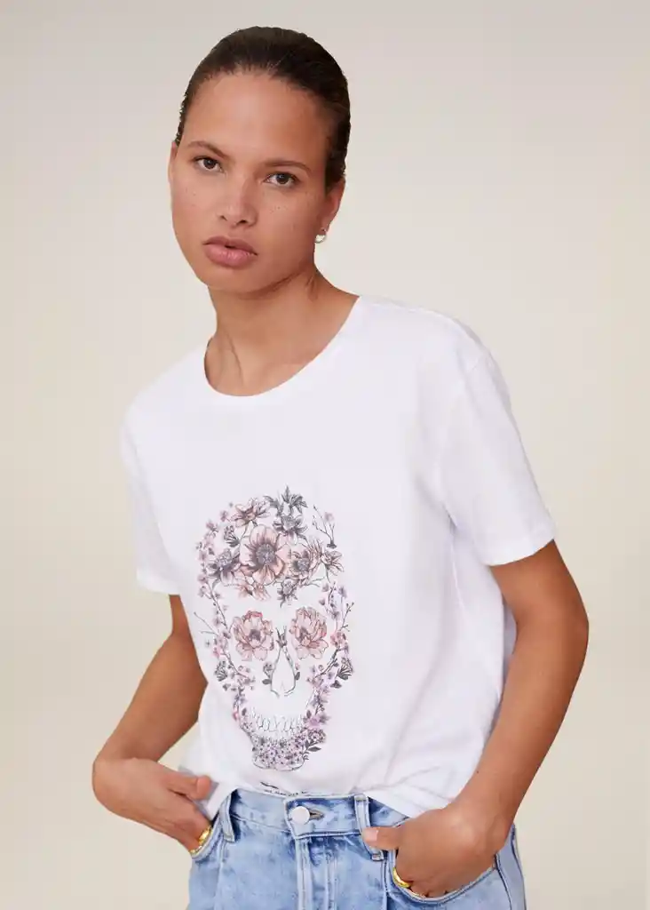 Costura Del Hombro Caída Cuello Redondo Ilustraciã³N Estampada Manga Corta Tejido de Algodón - 67017896_02