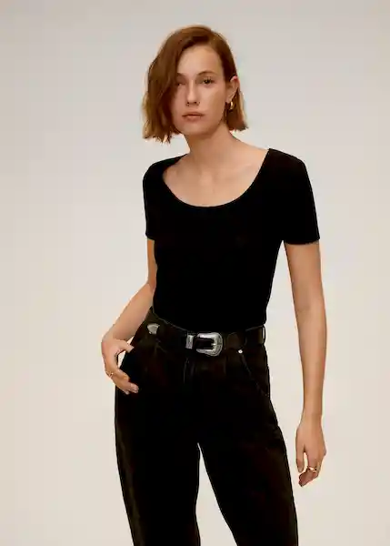 Mango Camiseta Ribdance Negro Talla S