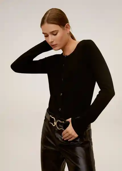 Cierre de Botones, Cuello Redondo, Manga Larga, Tejido de Canalé, Tejido de Punto - 67060578_99