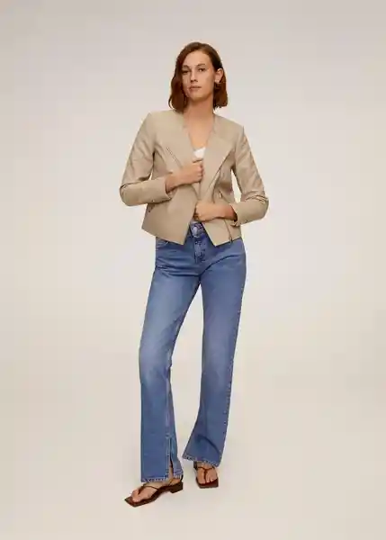 100% Piel Cierre de Cremallera Cuello Redondo Diseño Corto Dos Bolsillos Laterales Forro Interior Manga Larga 67070524_08