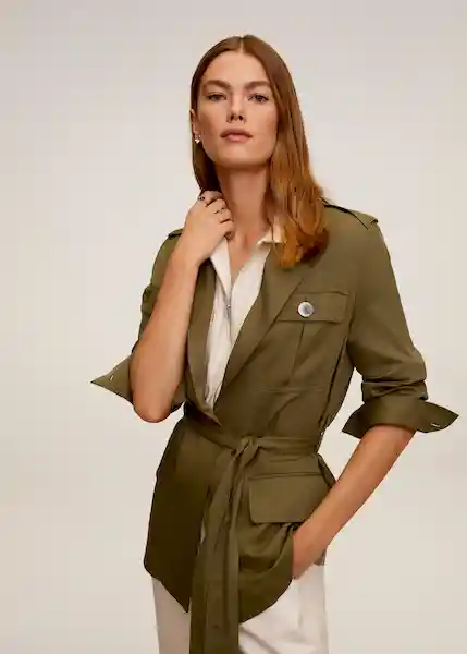 Cierre de Botones en Contraste Cinturón Ajustable Corte Midi Cuatro Bolsillos de Parche en la Parte Delantera Cuello Clásico Manga Larga Con Puños Abotonados Tejido Con Algodón Tejido Con Lino Tejido Fluido - 67045970_37