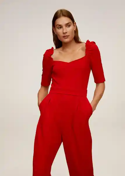 Cierre de Cremallera en la Parte Posterior Detalle de Volante en la Manga Diseño Largo Escote de Pico Manga Corta Tejido Fluido 67095975_70