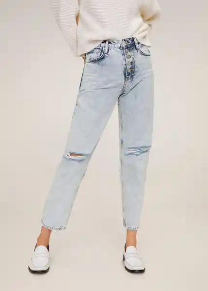 100% Algodón Orgánico Cierre de Botones Cinco Bolsillos Corte Recto Lavado Desgastado Mom-Fit Rotos Decorativos Tiro Alto Trabillas - 67004401_Bl