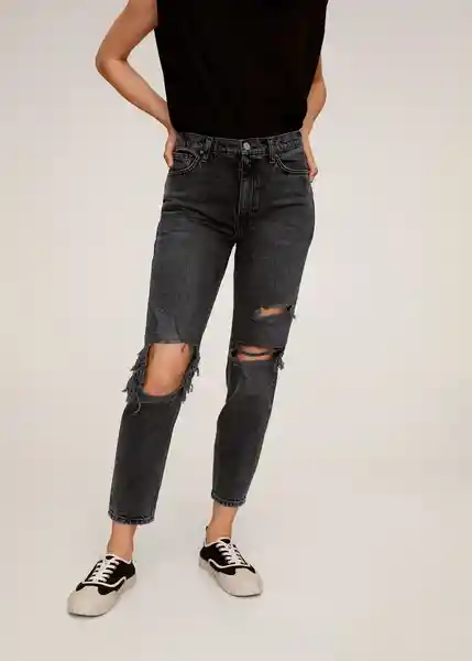 Cierre de Cremallera y Botón Cinco Bolsillos Diseño Largo Diseño Recto Mom-Fit Tejido de Algodón Estilo Denim Tiro Alto Trabillas en la Cintura - 67004397_Tn