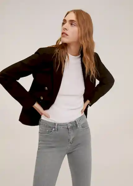 Cierre de Cremallera y Botón Cinco Bolsillos Corte Skinny Diseño Recto Lavado Claro Tejido de Denim Tiro Medio Trabillas - 67020525_Tg