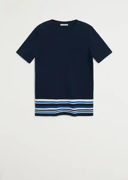 Bolsillo de Parche en el Pecho Cuello Redondo Detalle de Rayas en Contraste Línea Casual Manga Corta Tejido de Algodón Tejido de Punto Terminaciones de Canalé Terminaciones Elásticas - 67067638_56