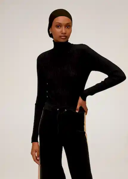 Cuello Vuelto Diseño de Canalé Manga Larga Tejido de Punto Fino - 67012510_99