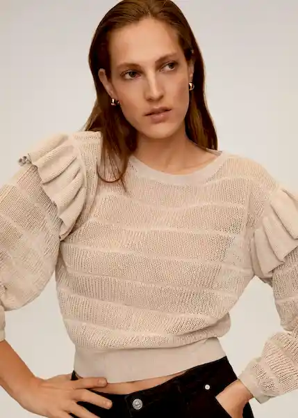 Cuello Redondo Detalle de Volante en la Manga Diseño Calado Manga Larga Abullonada Tejido Con Algodón Terminaciones en Canalé - 67025966_82